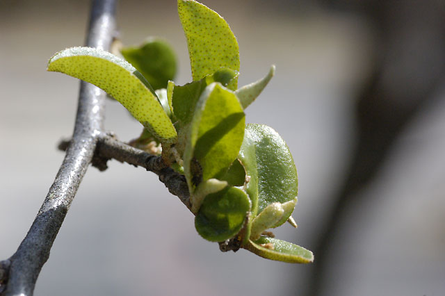 花だけではなく、木々の葉っぱも次々と芽吹いている昨今ですが、我が家もずいぶん新緑が目立つようになってきました。写真はナツグミの新芽。この木は春の芽吹きも早いですが、秋遅くまで葉を付けるので、長い期間緑が欲しいけど常緑樹はちょっと・・・という時にいいかもしれません。樹勢があるので剪定大変ですが。我が家の品種はかなり大きい実が付くので近所で有名だったりします。ちょっとえぐみはありますが、完熟した甘い実は夏の楽しみのひとつです。