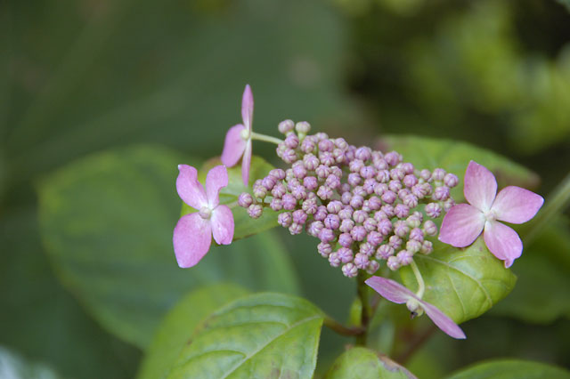 山アジサイに「黒姫」という品種があって、花は小振りながら濃いブルーが特徴的な有名種だったりします。我が家でも山アジサイを徐々に増やしていこうと、3月に黒姫のポット苗を購入し、ついに開花を迎えたのですが、どういうわけか猛烈にピンク色なんですよ。写真よりも実際は濃く感じるくらいで、それはそれで珍しくていいんですけどかなり慌てました。以前にスギナ対策で苦土石灰撒いたことがあったのですが、ひょっとすると土壌pHがものすごくアルカリに振られているのでしょうか。それとも単なる品種違いだったのかも。