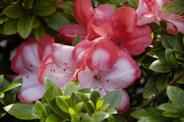 普段あまり手入れもしてなくてほったらかしのサツキですが、毎年けなげに花を咲かせてくれます。今年は暖冬の影響か、花芽の付きが若干悪いように思いますが、この覆輪の品種は花をいっぱい付けました。しかし、その前に植えたギボウシが今年大きくなりすぎてよく見えないというのがなんとも泣けます。