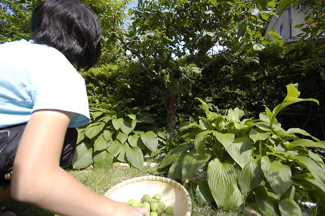 > 梅の実収穫