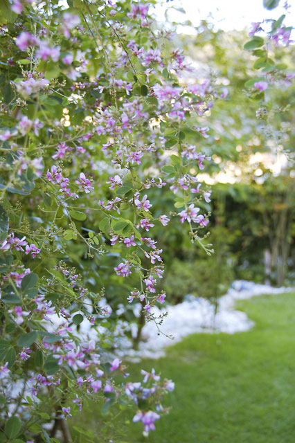 10月に入り、風はすっかり秋の風になりましたが、まだ日差しは厳しいです。彼岸前から咲き出した我が家の萩は今が盛り。引っ越してきた当初、てっきり枯れ木かと思っていて処分しようかと思っていたことが思い出されます。季節感のある花ですので、ご近所の方が散歩がてらに眺めていることもしばしば。秋の花はこれとヤブランぐらいですので、処分しなくて良かったとつくづく思います。現在は黒竹の鉢が置かれ、六方石が立ち並ぶこのエリア。敷いた錆び砂利を際だたせるため、周囲を那智黒で締めようと考えていますが、明日から家の外装工事が始まります。およそひと月の間、おとなしくしています。