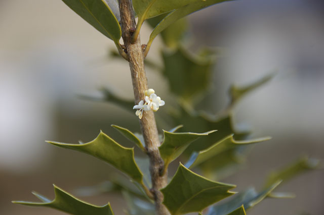 庭掃除をしていたら、ヒイラギが花を付けてるのを見つけました。木偏に冬と書くだけあって今頃が見頃なのかもしれませんがその花は実に地味。いかにもモクセイ科っぽい花ですね。クリスマスでおなじみのセイヨウヒイラギとそっくりですが全然違う種類とは。ウチでは庭の東側生け垣の間に植えてあったのですが、ひょっとしたら風水的に意味があったりするのかもしれないなとか考えてしまって動かすことができない木のひとつです。