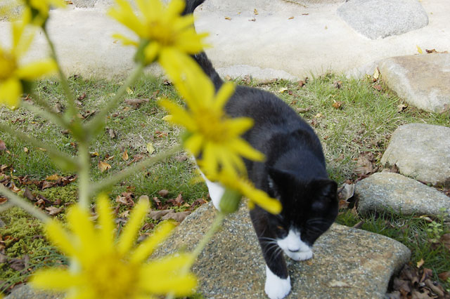 日がすっかり短くなり、落ち葉が目立つようになってきました。庭の芝生もあちこちで緑を失い、庭全体が冬支度を始めています。ほとんど何もしなくても元気なメダカたちですが、睡蓮鉢に忍び寄る怪しい影が。しゃがんで庭仕事をしていると突然頭をぶつけてきてびっくりさせられる隣のネコです。メダカにとって緊急事態ですが、当のネコは睡蓮鉢の水飲んで帰っちゃったりしてます。濡れるの嫌なのかもしれませんね。