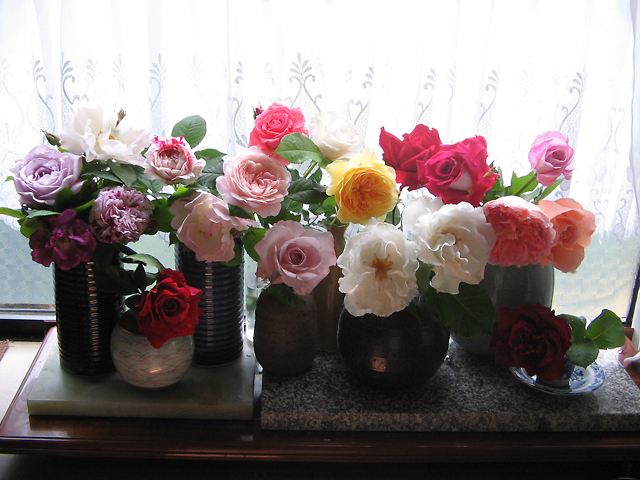 新妻さんからもう一枚お写真が届いています。窓辺に飾られたバラの花々は、会員の鈴木良子さんから頂いたものだそうです。いただいたものだけで20種類ほど。良子さんのお庭にはまだまだいっぱいあるそうです。先日のインデックスツアー時にはまだ咲き始めでしたが、今まさに盛り。この時のために1年かかってお世話をしてきたとおっしゃっていたそうです。そのようなお言葉を聞いて、とても花がいとおしくなり、「写真を撮ってあげなくては」と言う気持ちになったそうで、会員の皆さまにも見ていただけるようにとお写真を送ってきていただきました。窓辺の光に透ける色とりどりの花々がとても美しいです。新妻さん素敵なお便りをありがとうございました。