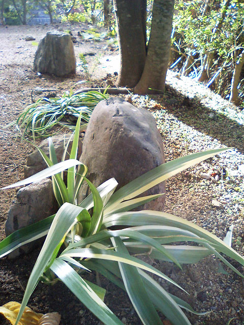 到着後、数日放置されておりました気の毒なシャガですが、今朝出がけにちょちょいと定植して仕事に。思ったより草丈が高かったので別の場所に移すかもしれません。なにやら石が増えてますが、シマトネリコとかヤマボウシとか植えるために庭掘り返していたら出てきた石たちです。始末に困っていたのですが、有用な形で再利用することに。