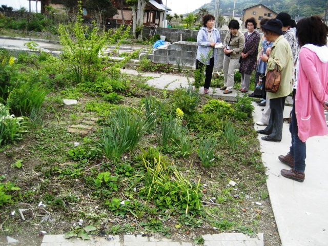 グッズも含め手作り感にあふれた島抜さん宅、珍品の花とブルーのコテージが印象に残る阿部啓子さん宅、ダイナミックな仕立て方に凝った小平さん宅、津波に負けない草花が賑わっていた阿部恒代さん宅、車中からも楽しめる飯高宅、盆栽から庭木へと変身した木々の新緑が眩しい新妻さん宅・・・個性豊かな演出を堪能できました。