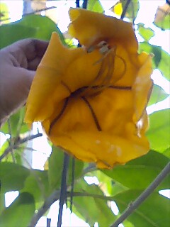 左の大きな黄色い花は「ウコンラッパバナ」。先日の総会に切り花をお持ちいただいたのですが、ココナツフレーバーのとても良い香り。花弁はかなり肉厚です。沖縄の花らしいですね。