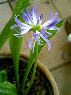 右の青白の花は「グリフィニア」。ユリ科の球根植物ですが、ネリネなどと同様、分類によってはヒガンバナ科なのかも。これも総会当日に鉢をお持ちいただきました。青と白のグラデーションがとても綺麗な繊細な花です。園芸品種としてはあまり出回っておらず、つい癖で切り花需要としても今後可能性があるとか思わず考えてしまったです。