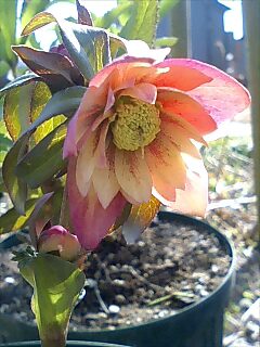 花の少ない時期にうれしいクリスマスローズは今が盛り。品種が数限りなくある中、アプリコットダブルの豪華な花はボリュームもあり、澄んだ花色がとても見事ですね。ご自身で交配も進めているそうで、今後どんな花が生まれてくるのか楽しみです。