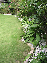 4軒目は拙宅。説明にいっぱいいっぱいで写真撮るの忘れてましたので後日撮った写真です。思いつきで行動してしまうため、いつも行き当たりばったりの造園計画ですが(無計画とも言います)、芝生と雑木の庭がコンセプト。まだまだ発展途上でこの先どうなっていくのか皆目見当がつきませんが、緑ばかりで花が少ないと家人からクレームを付けられています。