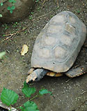 次に訪れた葉多野さんのお庭はまるで植物園のよう。沖縄暮らしが長く、引っ越しの際に持ってきた植物が多いため、こちらではあまり見かけない草花が多いのも特徴の一つです。琉球ガラスを各所に使ったエクステリアも素敵。その中に所狭しとさまざまな草花が顔をのぞかせています。線路沿いで駅に近いため、車窓から見かけた人が気になって訪ねてくることもしばしばあるとのこと。遠目にも確かに目立ちます。今回、植物だけではなく、来訪者のハートをがっちりつかんでいたのが庭でお昼寝していた陸ガメの「うみちゃん」。呼ぶと近寄って来る姿がとても愛らしくてたまりませんでした。