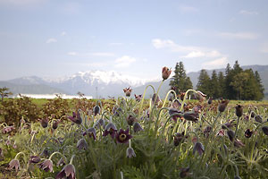 次に訪れたのは大前さんの庭。ケヤキの巨木に見守られた巨石たちや錦鯉が泳ぐ池も立派ですが、敷地の奥にある山野草の花壇がなんともすごいです。花壇だけにとどまらず、庭のあちこちに顔を出した山野草が清楚な春の雰囲気を醸し出していました。さらに奥に進むと雪をかぶった八海山が出現。たくさん撮った写真の中から八海山をバックに、大量に咲いていたオキナグサをチョイスしてみました。庭主のご夫婦がたいへん丁寧に説明していただいたのも嬉しかったです。